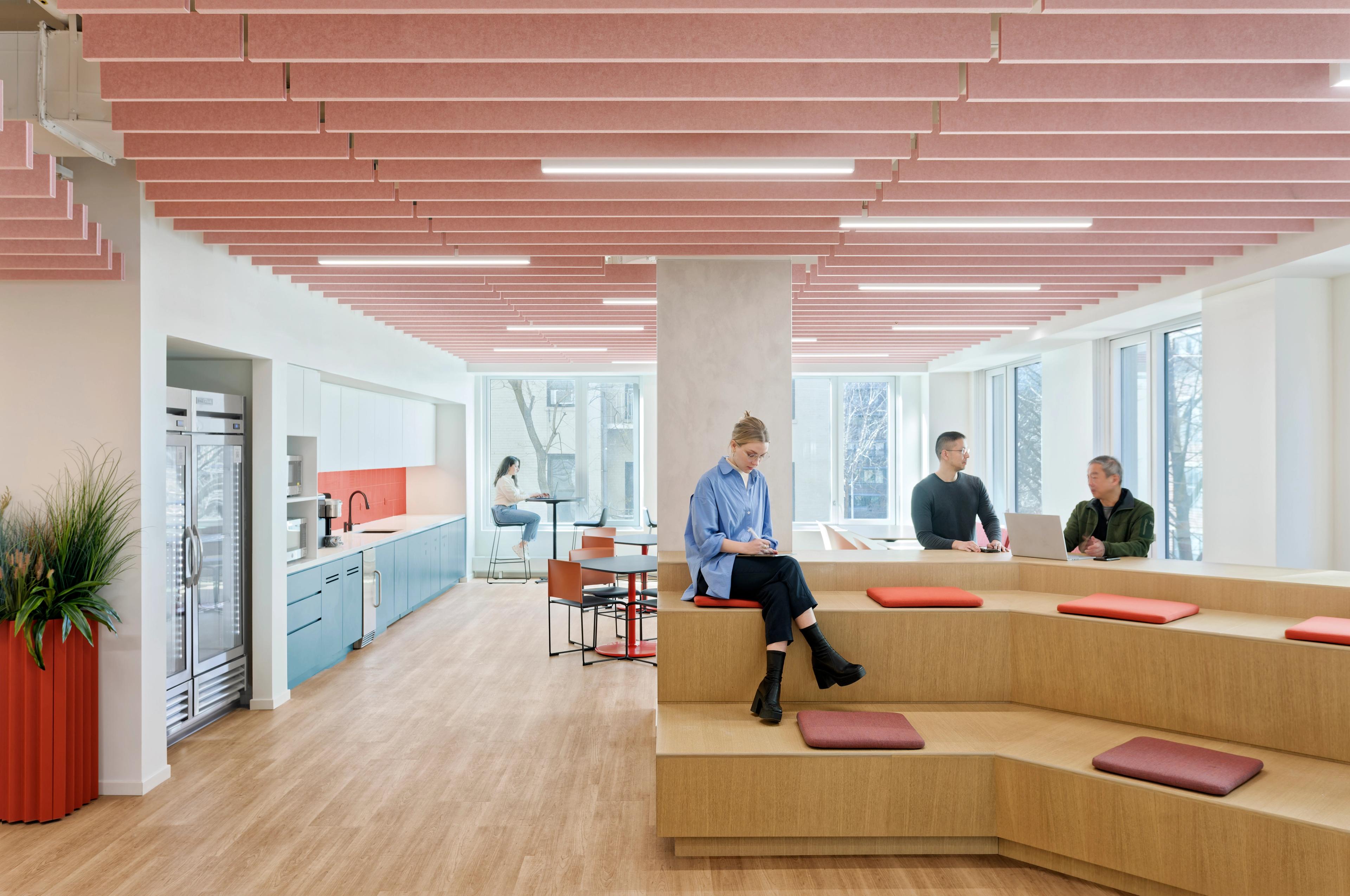 For the Chinese-American Planning Council’s NY-based HQ, we partnered with M Moser to transform the space into an inclusive community engagement hub with our Datum baffles. In the bright, sleek space, rows of our Datum baffles in coral add a soft touch of color with powerful acoustics to enhance productivity and comfort for staff and visitors alike.