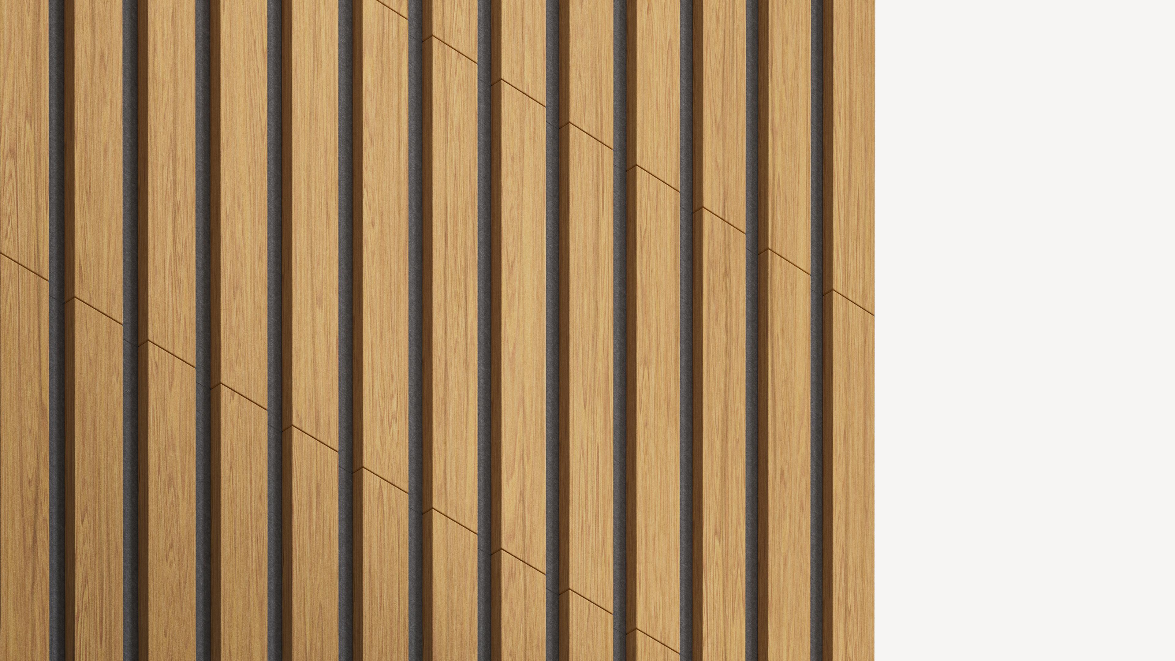 Line in: noise out. A series of straight lines from ceiling to wall strike unnecessary sound. Tidy and unassuming, lay the groundwork for balanced acoustics from the top down.